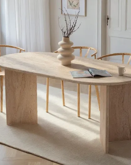 Table à manger Sablin travertin - 180x75x89.5 cm