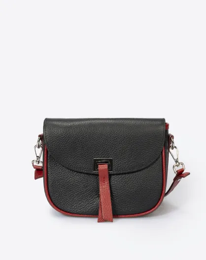 Sac bandoulière en Cuir Bela noir/rouge - 20x7x16 cm