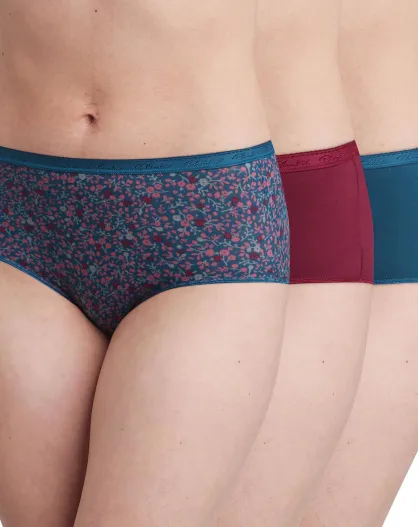 3 Culottes en Coton Bio rouge carmin/bleu/vert