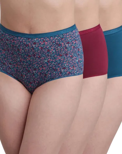 3 Culottes en Coton Bio rouge carmin/bleu/vert
