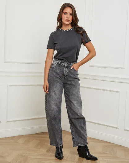 Jean Balloon Ample gris foncé