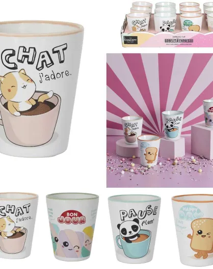 Gobelet expresso céramique Kawaii modèle aléatoire 7cl blanc/multicolore