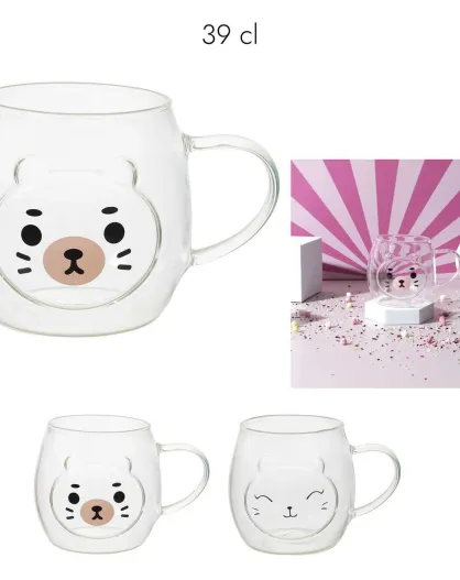 Mug verre Kawaii modèle aléatoire 390ml transparent