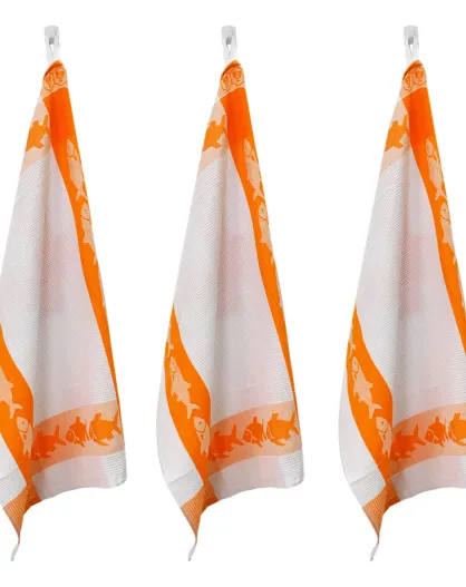 3 Torchons nid d'abeilles collection carré orange - 50x70 cm