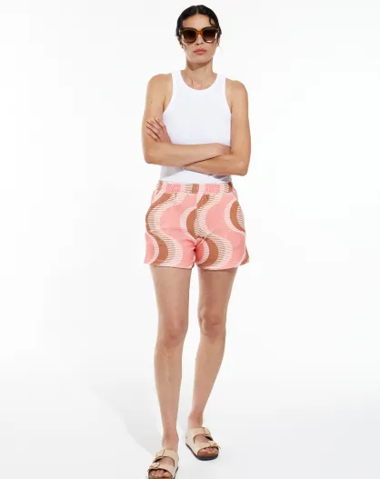 Short en Laine mélangée Davina pied-de-poule rose pâle
