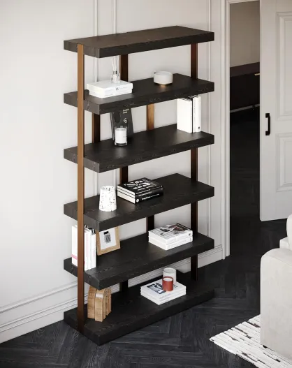 Etagère 6 niveaux Atlas bois noir/bronze - 110x35x170.6 cm