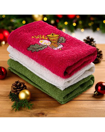 3 Serviettes De Bain vert/rouge/blanc - 30x50 cm