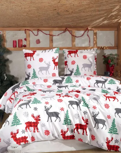 Parure de Lit de Noël blanc/rouge/gris
