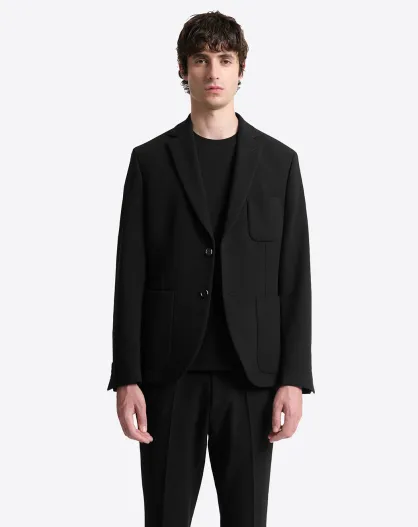 Veste de costume stretch en seersucker noire