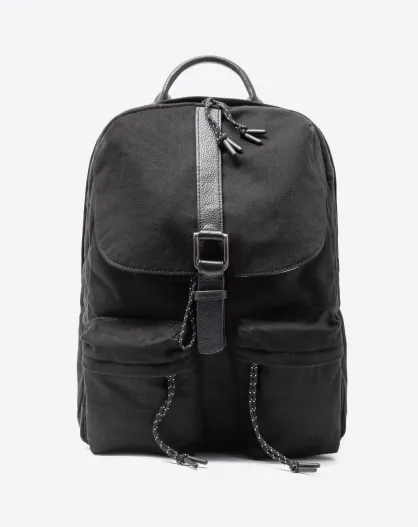 Sac à dos bi-matière en cuir de vachette noir - 30x40x13,5 cm