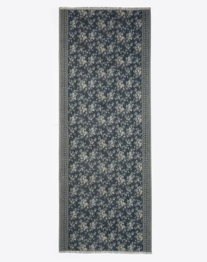 Coffret écharpe fleurie en viscose bleu cobalt - 185x70 cm