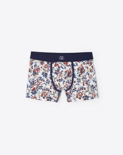 Boxer fleuri en coton blanc