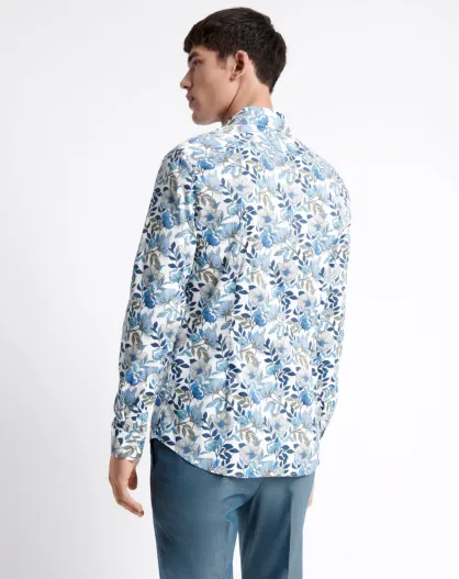 Chemise stretch fleurie en coton mélangé bleu outremer
