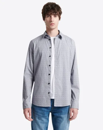 Chemise stretch en coton fantaisie bleu dur