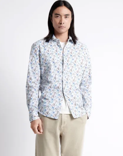 Chemise stretch fleurie en coton mélangé blanche