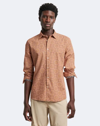 Chemise slim fleurie orange