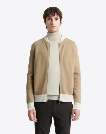 Gilet col teddy en Coton & Cachemire bicolore new camel