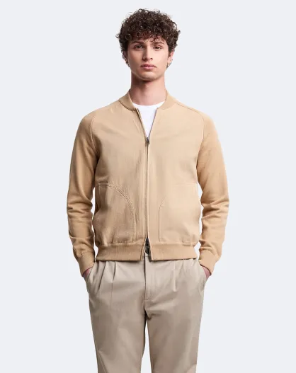 Cardigan 100% coton col teddy beige safari