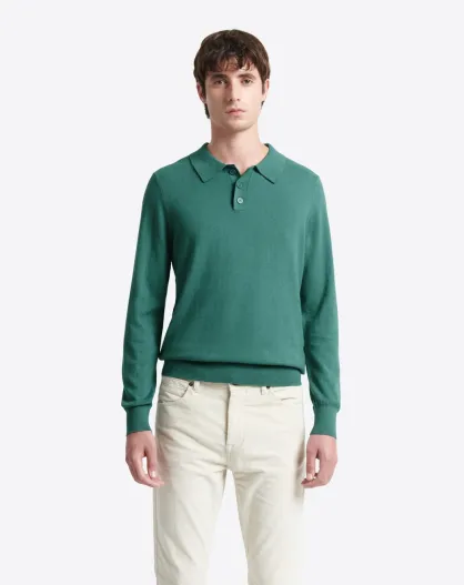 Polo boutonné en maille Coton & Cachemire vert mer