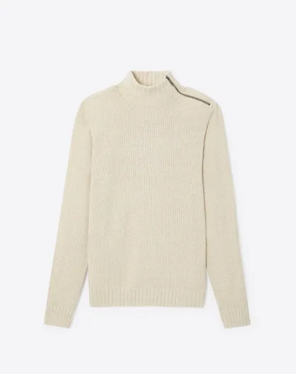 Pull col cheminée en Coton & Cachemire ivoire