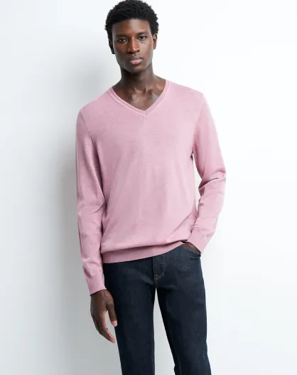 Pull col V 100% Laine mérinos bois de rose