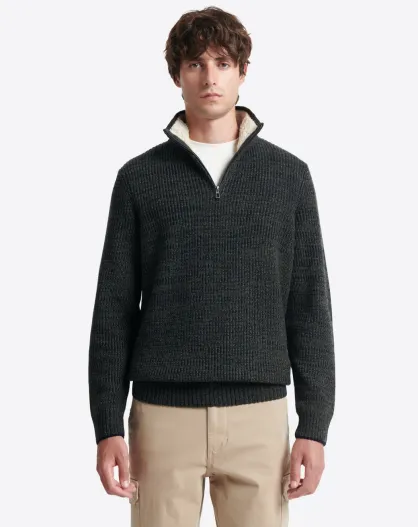 Pull à col cheminée en Laine d'agneau mélangée kaki cosy