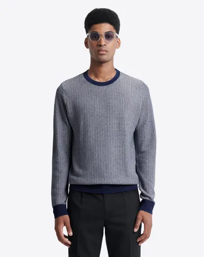 Pull col rond en Coton & Viscose bleu royal