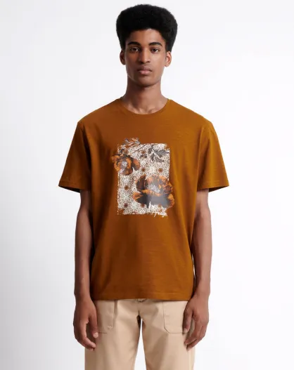 T-shirt col rond en Coton bio fleuri chestnut