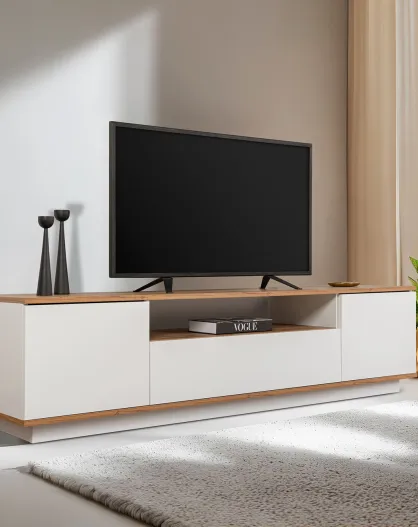 Meuble TV Veramont blanc/pin atlantique - 180x44.6x44.5 cm