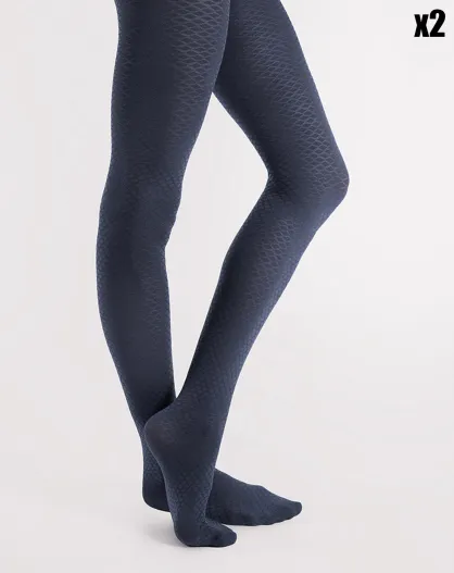 2 Collants à motifs Aquatic 40 deniers bleu marine