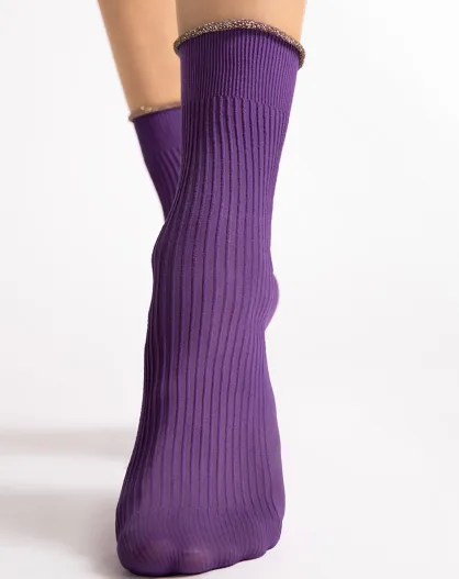 2 Paires de chaussettes à motifs Sassy 40 deniers violet particien