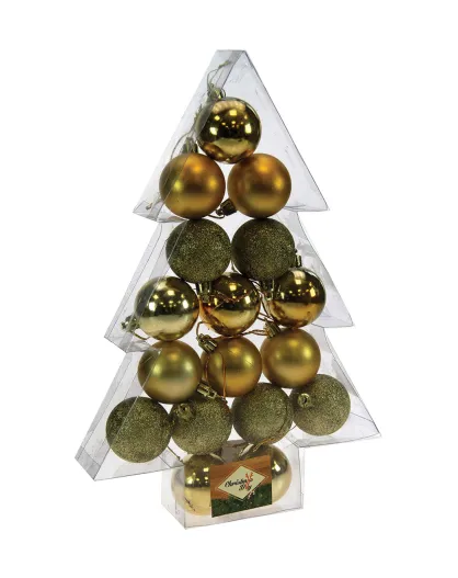 Coffret Sapin 17 boules Or - finit brilliant/mat/pailleté - boite PVC