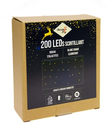 Icile Scintillant - Rideau stalactique 200 LEDs blanc chaud