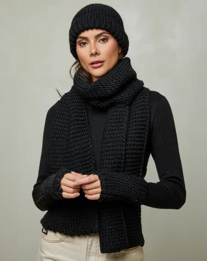 Ensemble Bonnet, Mitaines et Écharpe Cassiane noir