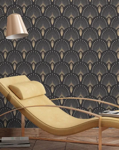 Papier Peint 1925 Gris foncé Anthracite Doré - 53x1000 cm