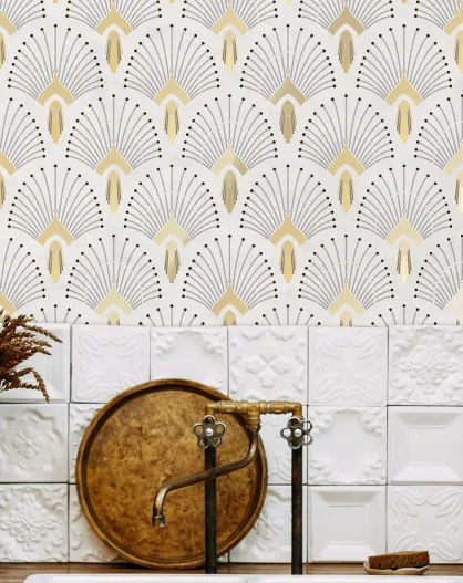 Papier Peint 1925 Beige Doré - 53x1000 cm