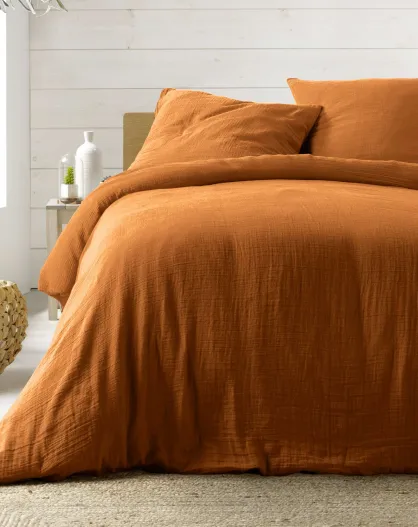 Parure housse de couette double Gaze de Coton Angelia caramel
