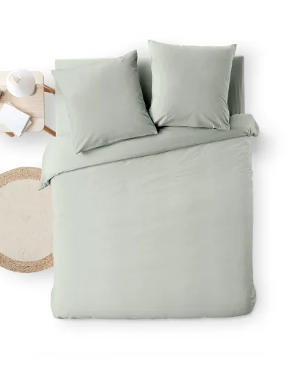 Parure 100% Percale de Coton Venezia housse de couette & 2 taies céladon