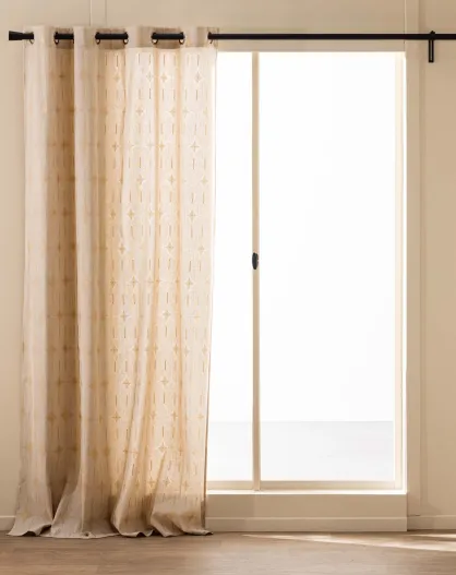 Rideau à Oeillets (140 x 240 cm) Ondine Blanc, Polycoton Imprimé Métallisé