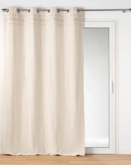 Rideau à Oeillets (140 x 240 cm) Doreline Naturel, Coton Jacquard et Top Fils Métallisés