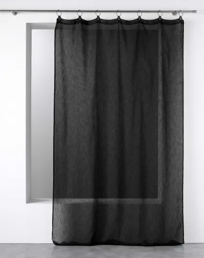 Voilage à Anneaux (140 x 240 Cm) Linka Noir, Voile Tissé