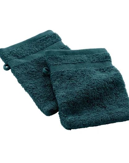 2 Gants de Toilette (15 x 21 cm) Elegance Bleu Vert, 100 % Coton Uni