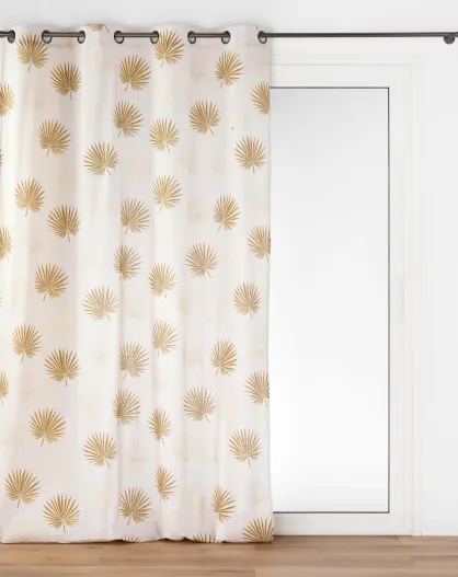Rideau à Oeillets (140 x 240 cm) Lotus Ocre, Polycoton Imprimé Métallisé