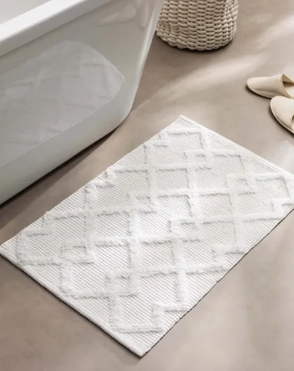 Tapis de bain coton jacquard tufte Otis blanc - 50x80 cm