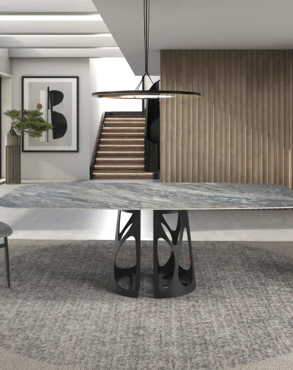 Table à Manger Bleu Noir - 238x110x110 cm
