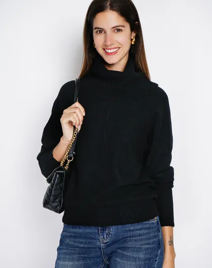 Pull col boule noir