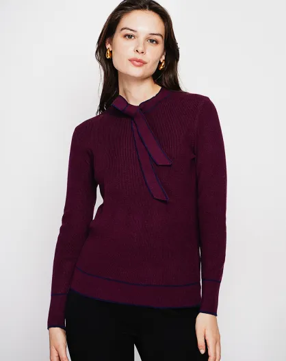 Pull en Cachemire mélangé col V à noeud bordeaux
