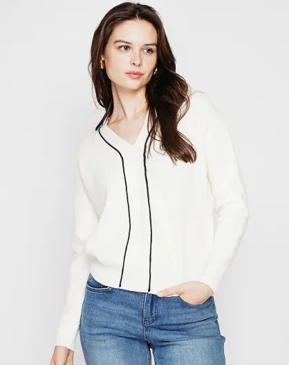 Pull col V naturel