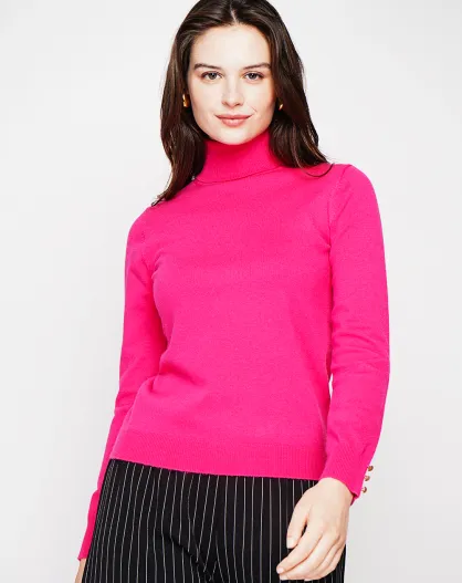 Pull Rhiana 100% laine col bicolore rose fuchsia