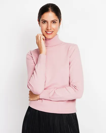 Pull Brunehilde 100% laine col montant côtelé rose bonbon
